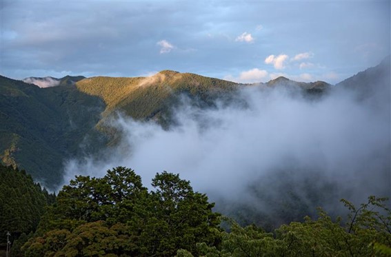 奈良県吉野郡川上村高原、霞が立ち上がり山頂がぽっこり顔を出す景色の中、クネクネと続く山道を車で登って行くと井崎正巳さん(72才)が移り住んだ古民家にたどりつきます。