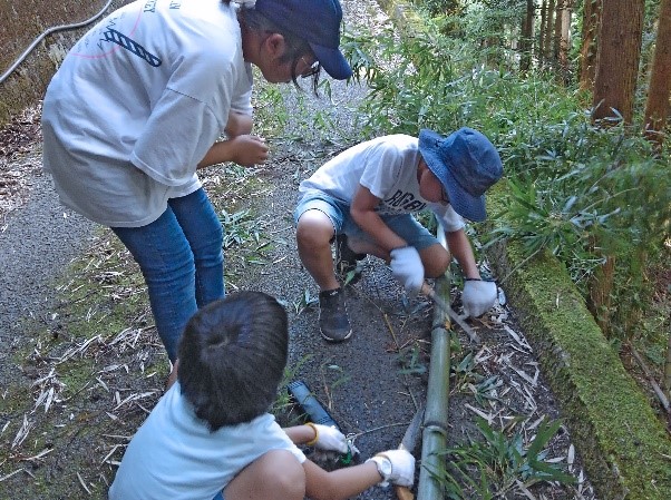 日本という特別な国家の歴史を知るために古墳を見たり神社を参拝したり、山から竹を切って来て流しそうめんを楽しんだり、和紙作りを体験したりしました。食事も同様で、自分で食べる野菜は自分で収穫し、他の買い物もさせて調理までの全てを子供達自身でするようにしました。