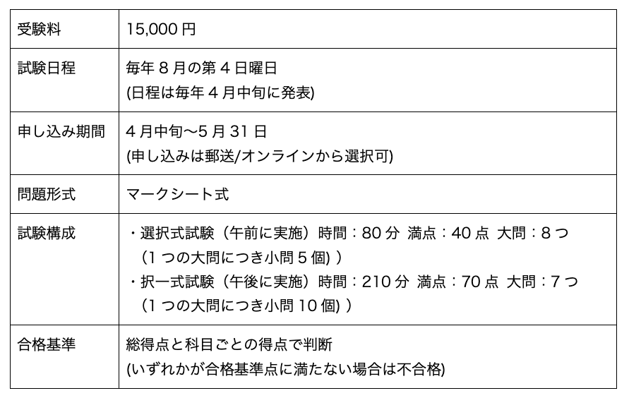 社労士になるのに欠かせない社労士資格。試験の概要は以下のとおりです。