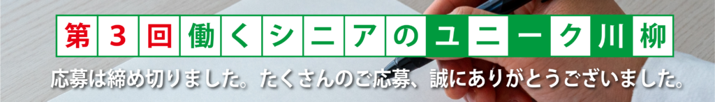 第3回働くシニアのユニーク川柳は、4月30日(水)23:59をもって応募を締め切りました。