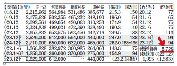 この会社の配当利回りは6.72%。