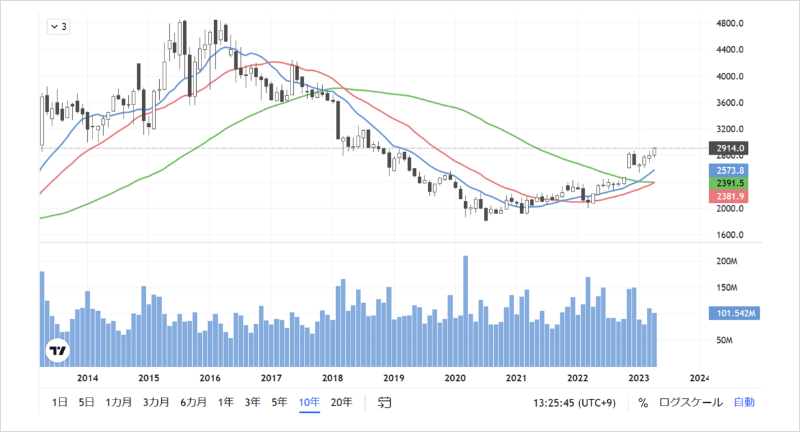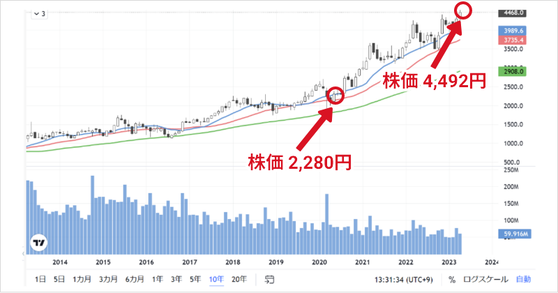 例えば2020年3月にこの株を買った人にとっては、