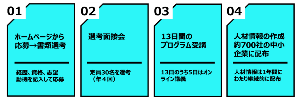 はい、そうです。あと近年の中小企業の人材不足を補う意味合いもあります。経験豊富で優秀な人材を、中小企業にご紹介出来るようなプログラムになっているかと思います。